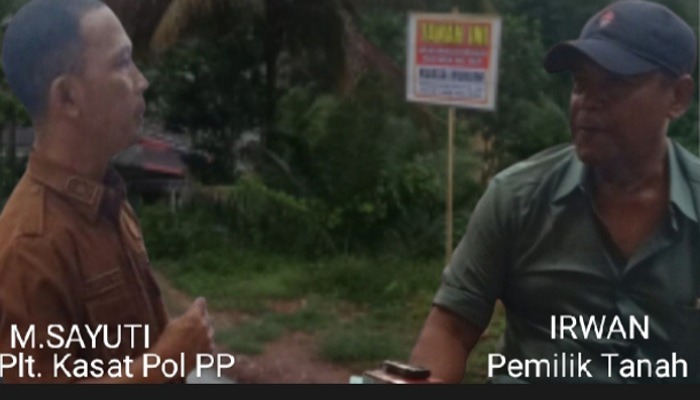 Akibat hal tersebut Irwan Firdaus selaku pemilik tanah yang bersertifikat di lokasi tersebut dibuat geram oleh kebijakan Kasat Pol PP Merangin Sayuti, pasalnya dia akan mendirikan bangunan kios bukan di atas cor bahu jalan yang baru di bangun oleh pemerintah pusat tersebut, melainkan di pojok turap yang tak lain adalah tanah milik pribadi.