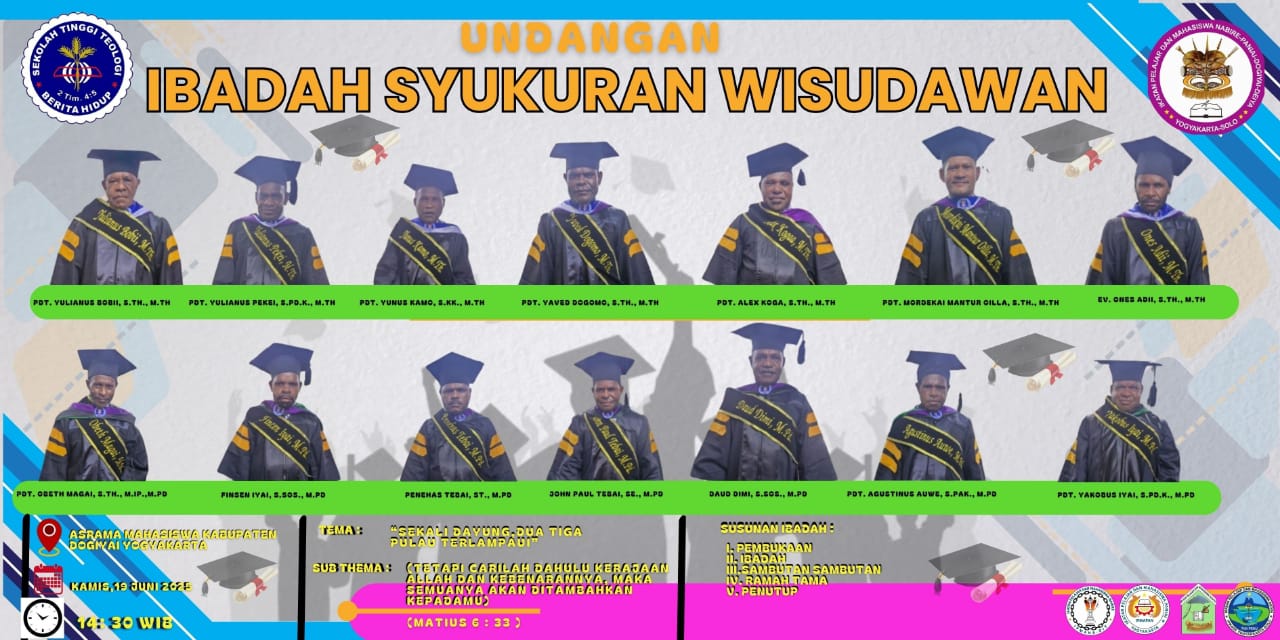 14 mahasiswa Rabu,18 Juni 2025, Yayasan Kasih Bapa Dogiyai (YAKBADO) mencatakkan sarjana dan magister, penting dalam pengembangan sumber daya manusia di bidang keagamaan dengan mewisuda 14 mahasiswa program Pascasarjana (S2) dari Sekolah Tinggi Teologi Berita Hidup (STTB) Karanganyar, Solo, Jawa Tengah.