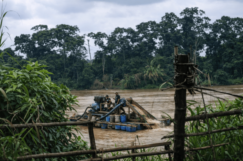 Berdasarkan keterangan masyarakat setempat, aktivitas PETI tersebut diketahui beroperasi menggunakan dompeng rakit yang bekerja hampir tanpa henti. Warga menyebut suara mesin terus terdengar sejak pagi hingga larut sore, bahkan kerap tidak berhenti hingga waktu azan Maghrib.
