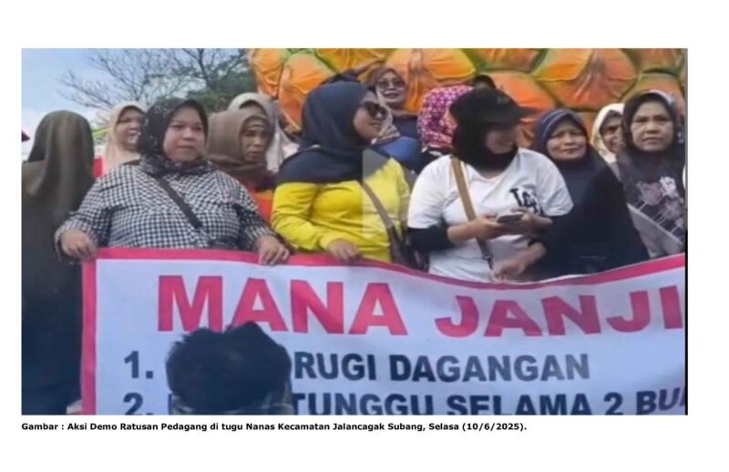 Suara Utama, Subang– Ratusan pedagang menuntut janji Gubernur Jawa Barat untuk memberikan kompensasi atau ganti rugi. Aksi tersebut dilakukan di tugu Nanas Kecamatan Jalancagak Subang pada Selasa (10/6/2025).