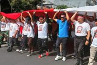 SUARA UTAMA, Kediri (16/8). Pemuda LDII Kota Kediri mengikuti kegiatan kirab Bendera Merah Putih raksasa yang diselenggarakan oleh Pemerintah Kota Kediri melalui Dinas Kebudayaan…