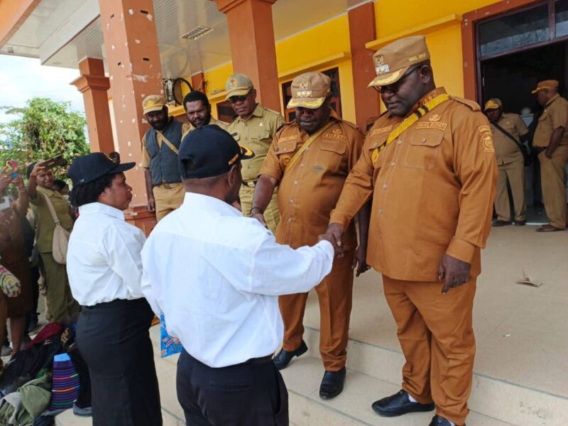 “Selamat kepada bapak/ibu. Kalau sudah jadi pegawai jangan malas-malas, harus rajin masuk kantor. Ini kesempatan berharga untuk kita sama-sama bangun Dogiyai,” ujar Bupati Yudas.
