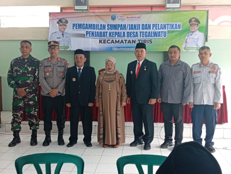 PJ Desa Tegalwatu di Lantik oleh camat Tiris pada hari Rabu tanggal 04 Maret 2026. Dalam sambutannya Camat Tiris “Bambang Julius Wijanarko” menyampaikan ucapan selamat bertugas bagi PJ yang baru di Lantik dan PK sebelumnya yang telah menjabat lurah.