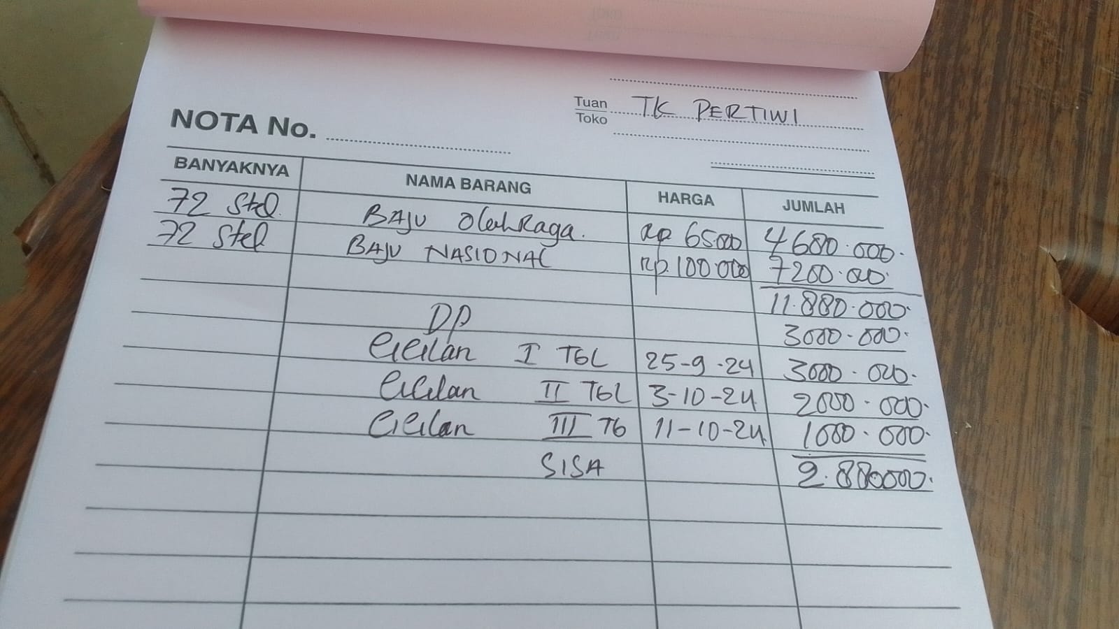 Suara Utama, Muara Enim- Seorang mantan guru Taman Pendidikan Kanak-kanak (TK) Pertiwi di Kelurahan Tungkal, Kecamatan Muara Enim,berinisial LT, dilaporkan oleh pihak vendor konveksi atas dugaan penggelapan dana pembuatan seragam Murid. LT sebelumnya dipercaya sebagai koordinator pengadaan seragam untuk para santri TK Pertiwi.(08/05/2025)