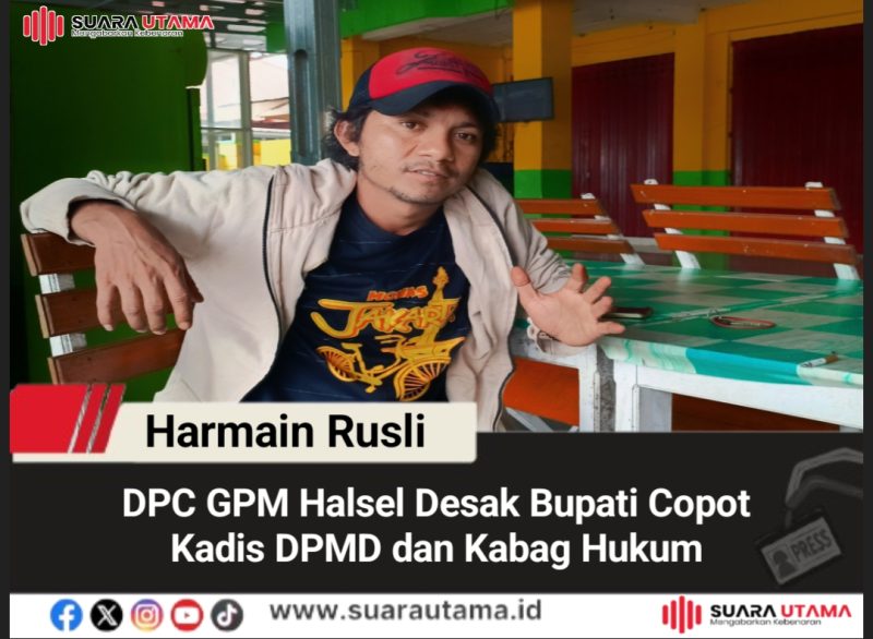 Suarautama.id | Halmahera Selatan – Dewan Pimpinan Cabang (DPC) Gerakan Pemuda Marhaenisme (GPM) Halmahera Selatan secara tegas mendesak Bupati Bassam Kasuba untuk mengambil langkah tegas berupa pencopotan terhadap Kepala Dinas Pemberdayaan Masyarakat dan Desa (DPMD) serta Kepala Bagian Hukum Pemda Halsel.(18/09)