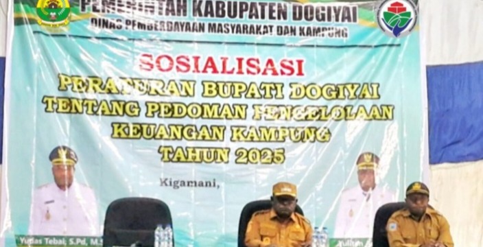 SUARAUTAMA,Dogiyai -Dinas Pemberdayaan Masyarakat dan Kampung (DPMK) Kabupaten Dogiyai menggelar sosialisasi Peraturan Bupati (Perbup) terkait pengelolaan Dana Kampung dan Dana Desa Tahun Anggaran 2025. Kegiatan berlangsung di Moanemani, pada Selasa,(9/9).