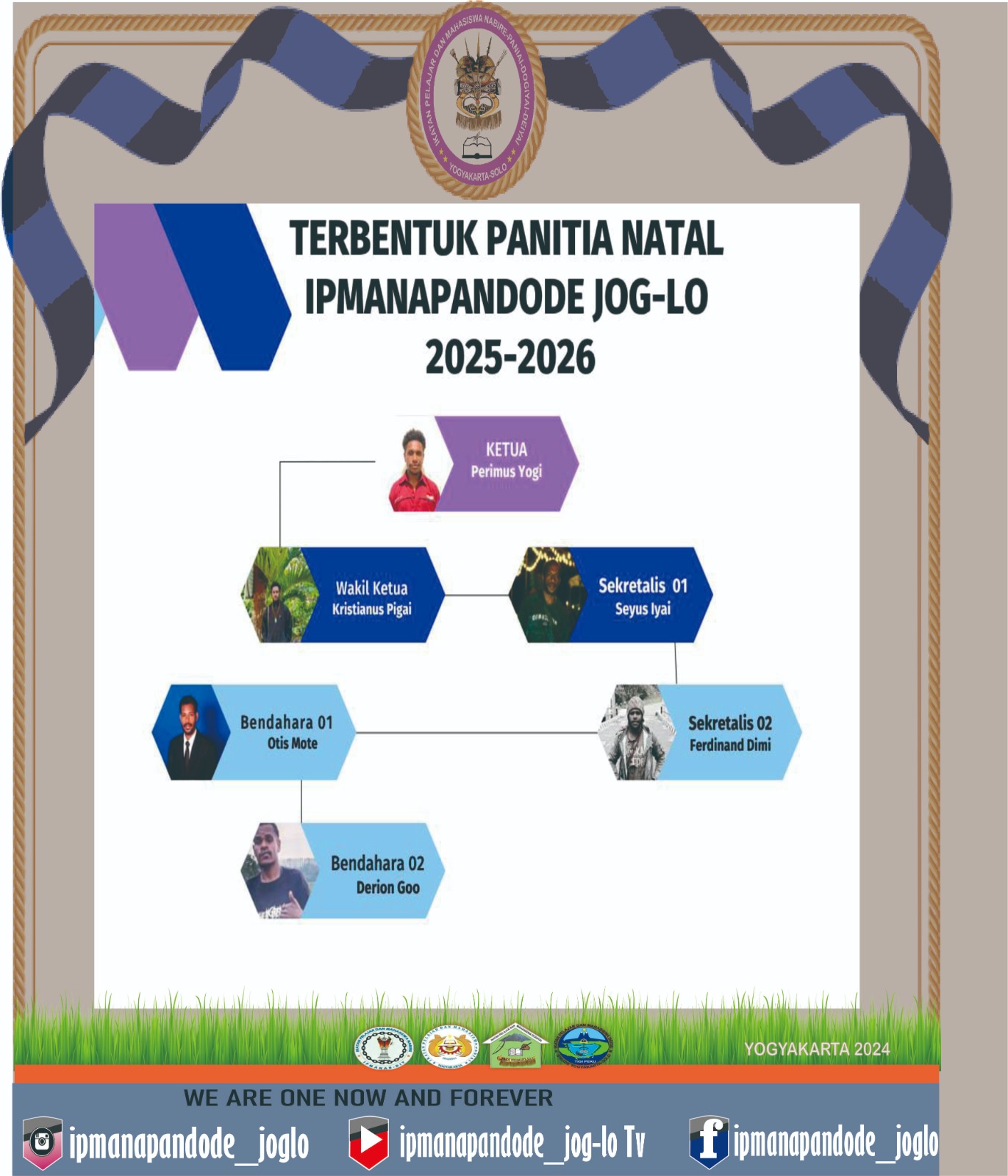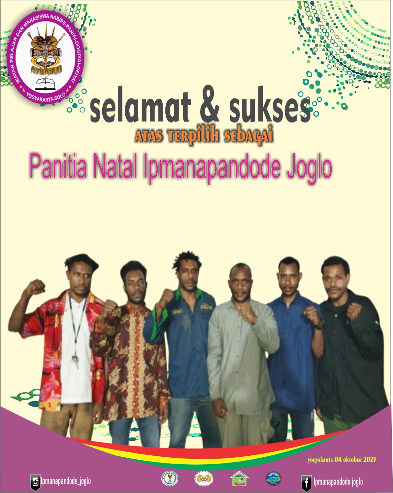 Yogyakarta – ( SuaraUtama.id ) Ikatan Pelajar dan Pahasiswa Nabire Paniai Dogiyai Deiyai Jogjakarta-Solo (Ipmanapandode Joglo) melakukan kegiatan Pembentukan Panitia Natal di Aulah asrama Dogiyai Yogyakarta Pada tanggal 04 Oktober 2025. Lalu lanjutkan dengan Pelantikan Pada hari dan Tempat yang sama.