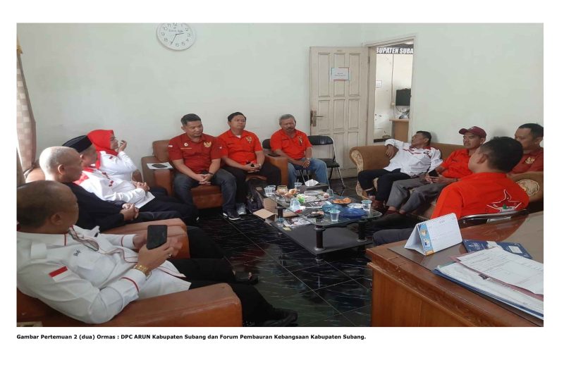 SUARA UTAMA, Subang.- Organisasi kemasyarakatan (Ormas) Advokasi Rakyat Untuk Nusantara (ARUN) Kabupaten Subang menjalin kemitraan dengan Forum Pembauran Kebangsaan (FPK) Kabupaten Subang, untuk mengawal program-program pembangunan sehingga bisa dinikmati masyarakat secara adil dan merata.