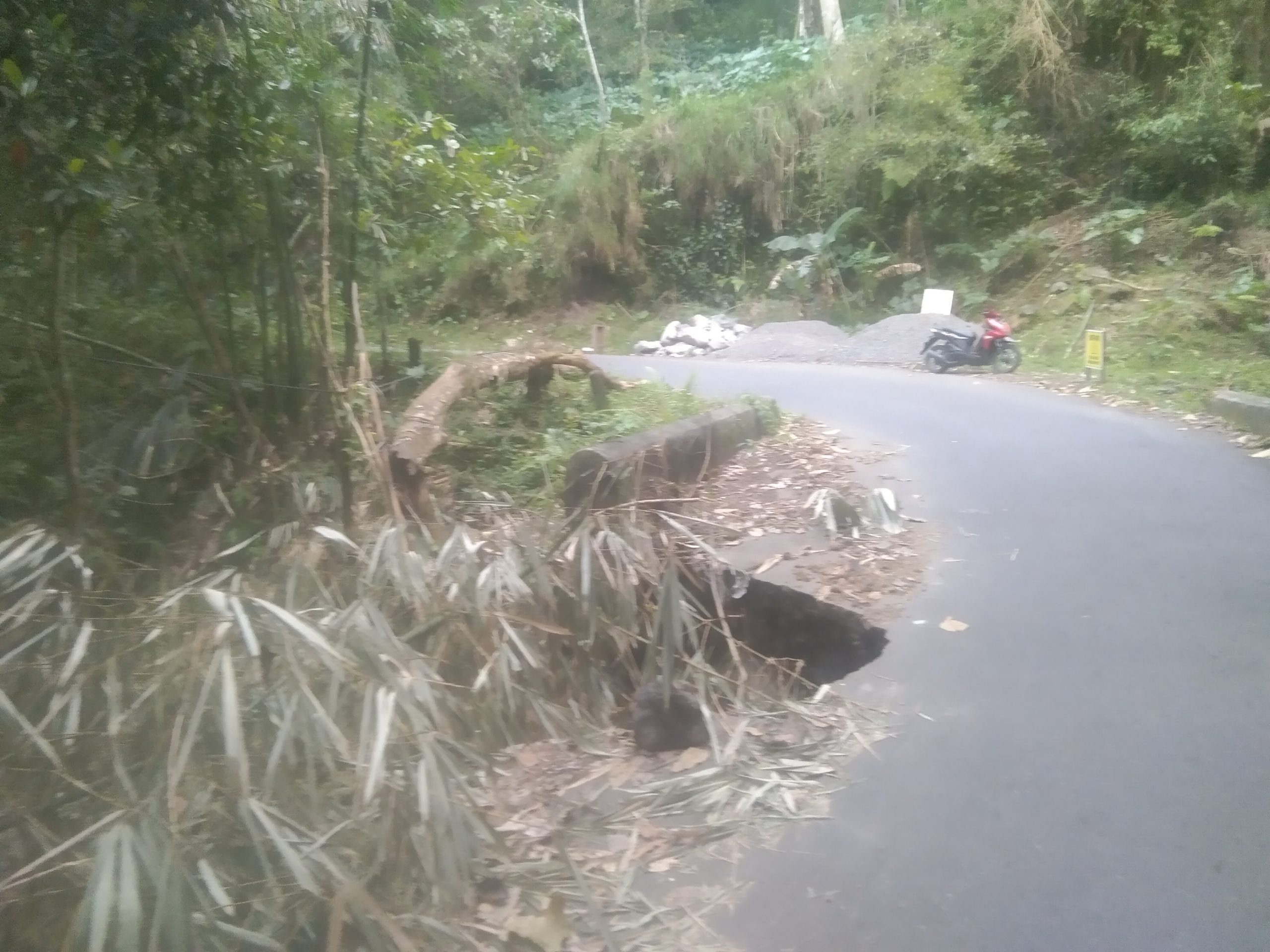 Ironisnya, material yang disebut untuk perbaikan justru dibiarkan menumpuk di lokasi hampir sebulan tanpa ada aktivitas pekerjaan. Warga Pajomala menilai situasi ini sudah membahayakan pengguna jalan.