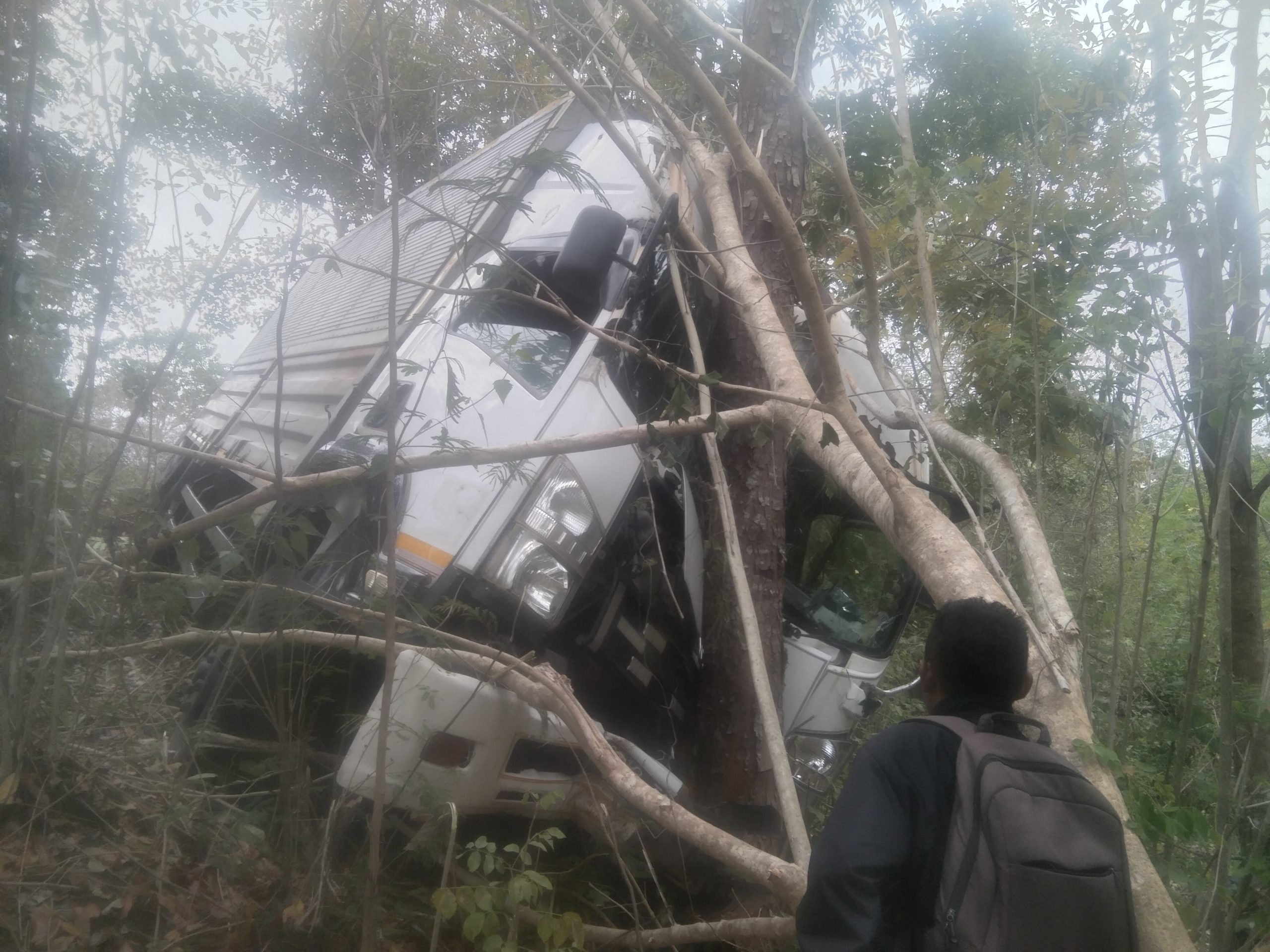 Mobil tersebut diketahui tengah mengangkut kargo milik salah satu perusahaan pengiriman barang. Dalam perjalanan, kendaraan tiba-tiba keluar jalur dan menabrak pohon di tepi jalan.