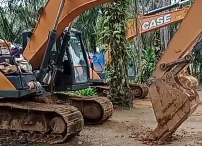 Berdasarkan informasi yang dihimpun media ini di lapangan pada Kamis, 8 Januari 2025, terpantau dua unit alat berat ekskavator merek CASE baru saja diturunkan dari kendaraan trado. Selain alat berat, turut terlihat peralatan pendukung tambang emas (asbuk) yang berada di sekitar lokasi penurunan alat berat tersebut.