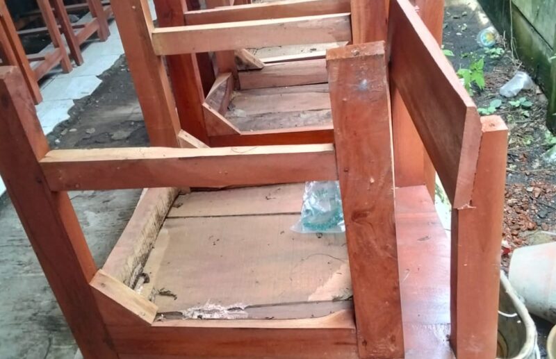 “Pekerjaan kebanyakan sesuai spesifikasi, dan konstruksi sesuai RAB. ada beberapa yang memang kurang sesuai spesifikasi. Terkait meja dan kursi memang plitur nya kurang bagus, saya sudah menegur oknum kepala sekolah agar plitur di ganti yang lebih bagus. Kayu kursi dan meja siswa seharusnya pakai kayu jati campur (hitam putih). “Pungkas nya.