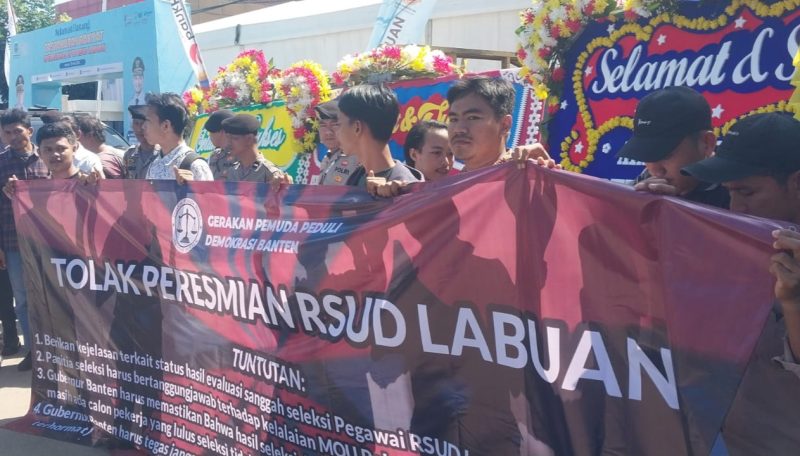 Sumber Berita : Aksi Unjuk Rasa Gerakan Pemuda Peduli Demokrasi Banten di Halaman RSUD Labuan.