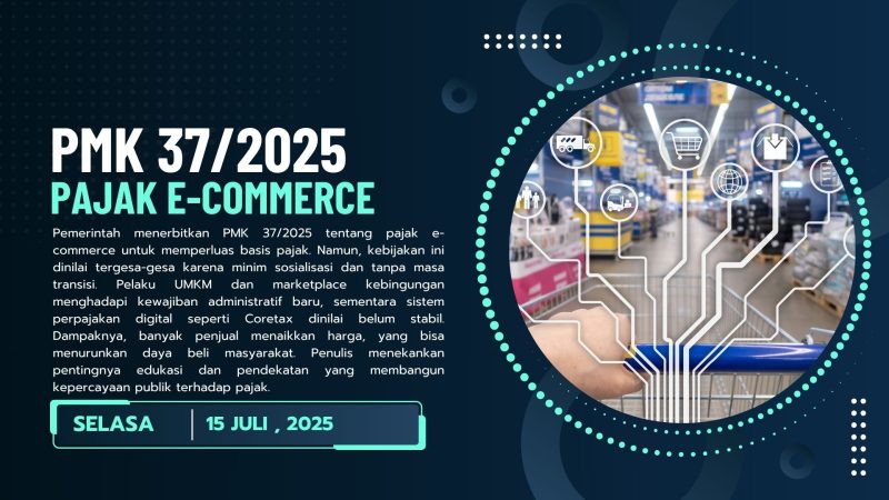 SUARA UTAMA – Pemerintah melalui Kementerian Keuangan telah menerbitkan Peraturan Menteri Keuangan (PMK) Nomor 37 Tahun 2025 yang mengatur mekanisme perpajakan untuk kegiatan e-commerce. Langkah ini, secara prinsip, dapat dipahami sebagai bagian dari upaya memperluas basis penerimaan negara seiring dengan meningkatnya transaksi ekonomi digital.