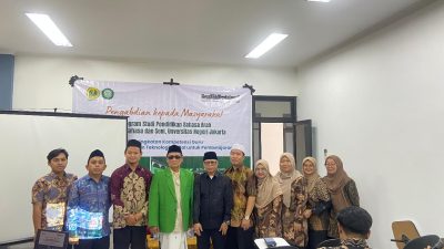 SUARA UTAMA, Bekasi – Program Studi Pendidikan Bahasa Arab, Universitas Negeri Jakarta (PBA UNJ) melaksanakan kegiatan Pengabdian kepada Masyarakat (PKM) dengan tema “Peningkatan Kompetensi Guru dalam Menggunakan Teknologi Digital untuk Pembelajaran”. Kegiatan ini berlangsung pada hari Sabtu, 21 Juni 2025, bertempat di MTs Al-Ajhariyyah, Cibitung, Kabupaten Bekasi, Jawa Barat dan diikuti oleh para guru dari lingkungan madrasah tersebut yang antusias mengikuti seluruh rangkaian pelatihan.