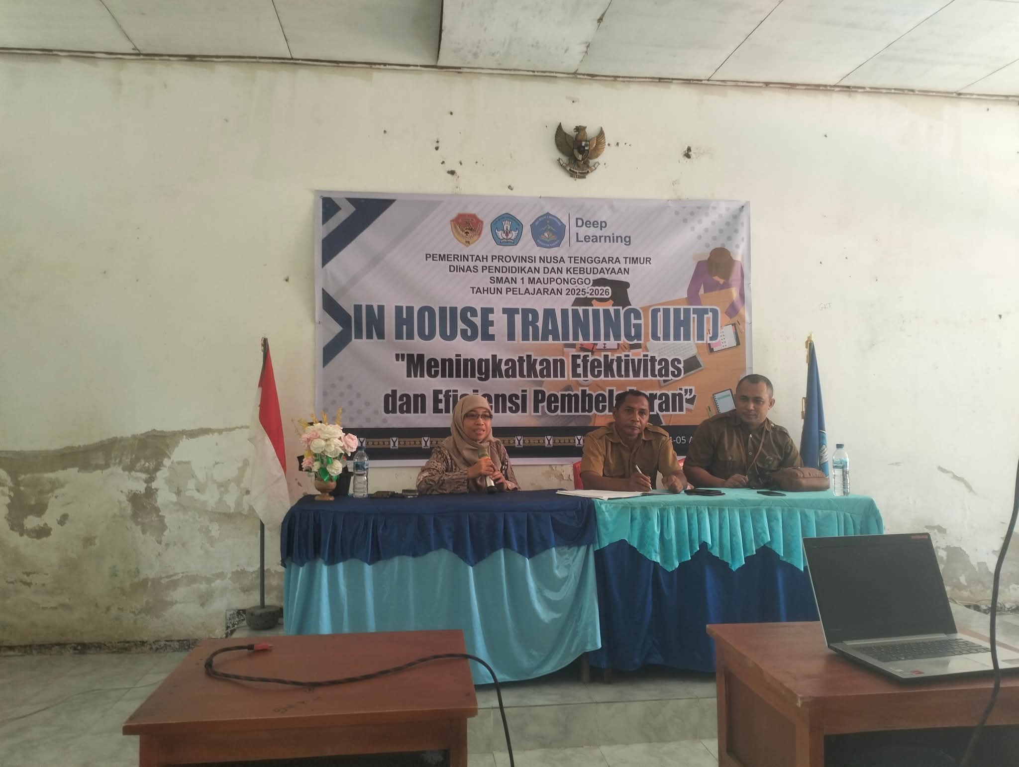 Sekolah Menengah Atas Negeri (SMAN) 1 Mauponggo, Kabupaten Nagekeo, Nusa Tenggara Timur, mengadakan In House Training (IHT) bertajuk “Deep.Learning” untuk meningkatkan kompetensi dan profesionalisme para guru. Acara yang berlangsung selama dua hari ini, menghadirkan dua narasumber hebat dari tingkat provinsi, yaitu Ibu Sari, S.Pd., M.Pd. dan Wilfridus Ndiwa, S.Pd, pada hari senin, 3 – 4 Agustus 2025