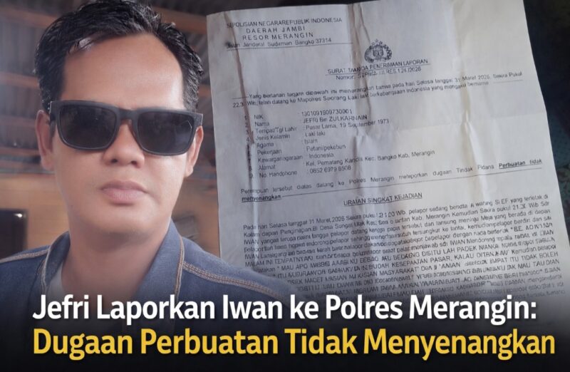 “Saya meminta kepada pihak penegak hukum, khususnya Polres Merangin, untuk segera memproses laporan ini. Hukum harus ditegakkan tanpa pandang bulu, karena tidak ada yang kebal hukum di negara ini. Jika memang terbukti bersalah, saya harap diproses sesuai undang-undang yang berlaku,” tegas Jefri.