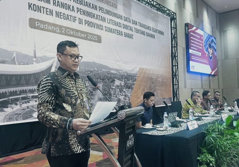 Polkam, Padang – Deputi Bidang Koordinasi Komunikasi dan Informasi Kementerian Koordinator Bidang Politik dan Keamanan (Kemenko Polhukam) melalui Asisten Deputi Koordinasi Pelindungan Data dan Transaksi Elektronik (Asdep PDTE) menggelar Rapat Koordinasi dan Sinkronisasi Implementasi Kebijakan Pelindungan Data dan Transaksi Elektronik di Provinsi Sumatera Barat.