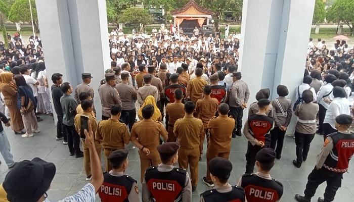 “Jika memang semua tuntutan yang kami sampaikan tidak ada kepastian atau kejelasan status, kami tenaga honorer dengan gaji Rp.700 ribu ini akan mengadakan mogok kerja ,” demikian tegas para tenaga honorer Kesehatan yang menggelar Aksi