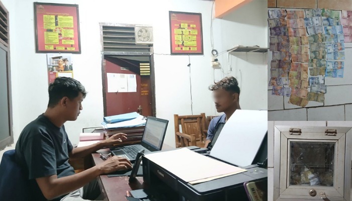 Pelaku tertangkap usai kejar-kejaran dengan warga di kebun sawit belakang toko. Dari tangannya ditemukan Rp947.000 hasil curian dari dua kotak amal, beserta satu obeng, satu kotak kayu, dan jaket abu-abu bertuliskan Levis.